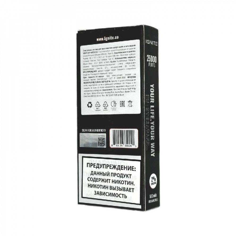 Электронная сигарета Ignite V250 Black 25000 - Strawberry Kiwi (Клубника киви) - купить в Хадыженске